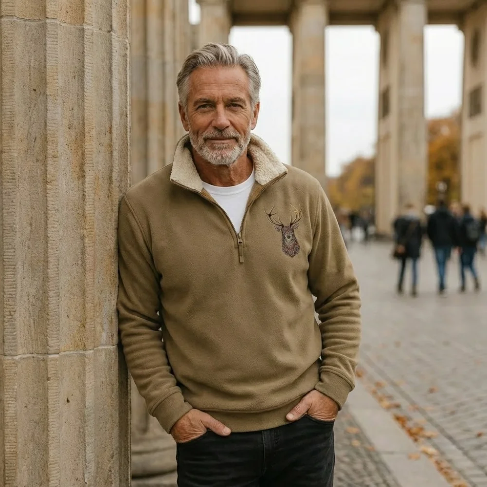 This sweater combines comfort and character in a robust yet elegant look. With its detailed deer design on the chest and eye-catching craftsmanship, this sweater is ideal for men who love the outdoors but also appreciate a fashionable appearance. The high collar with a zipper provides extra warmth and a casual look.