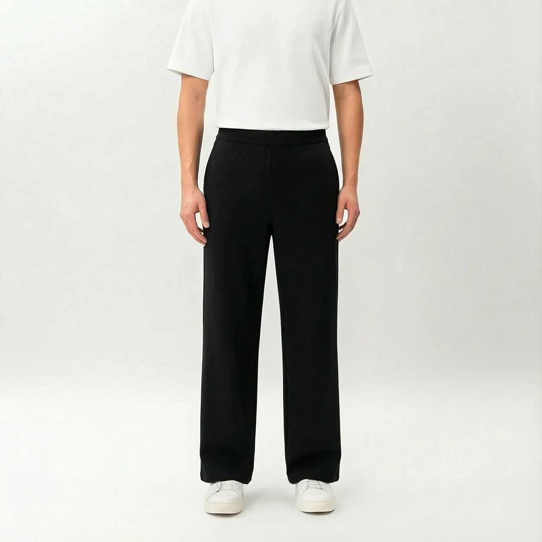 Pants that are as comfortable as stretchy sweatpants but look the part. Constructed from a stretchy and matte Ponte knit and features an elasticated waistband, hidden zip pocket, slip pockets and back welt pocket. Ethically produced in our SA8000® certified facilities.