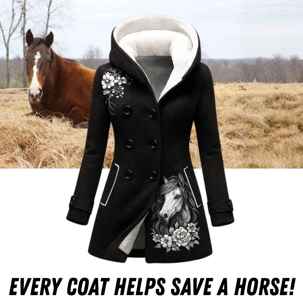 Wear this coat with pride knowing that a portion of your purchase goes towards rescuing and protecting abused horses around the world.